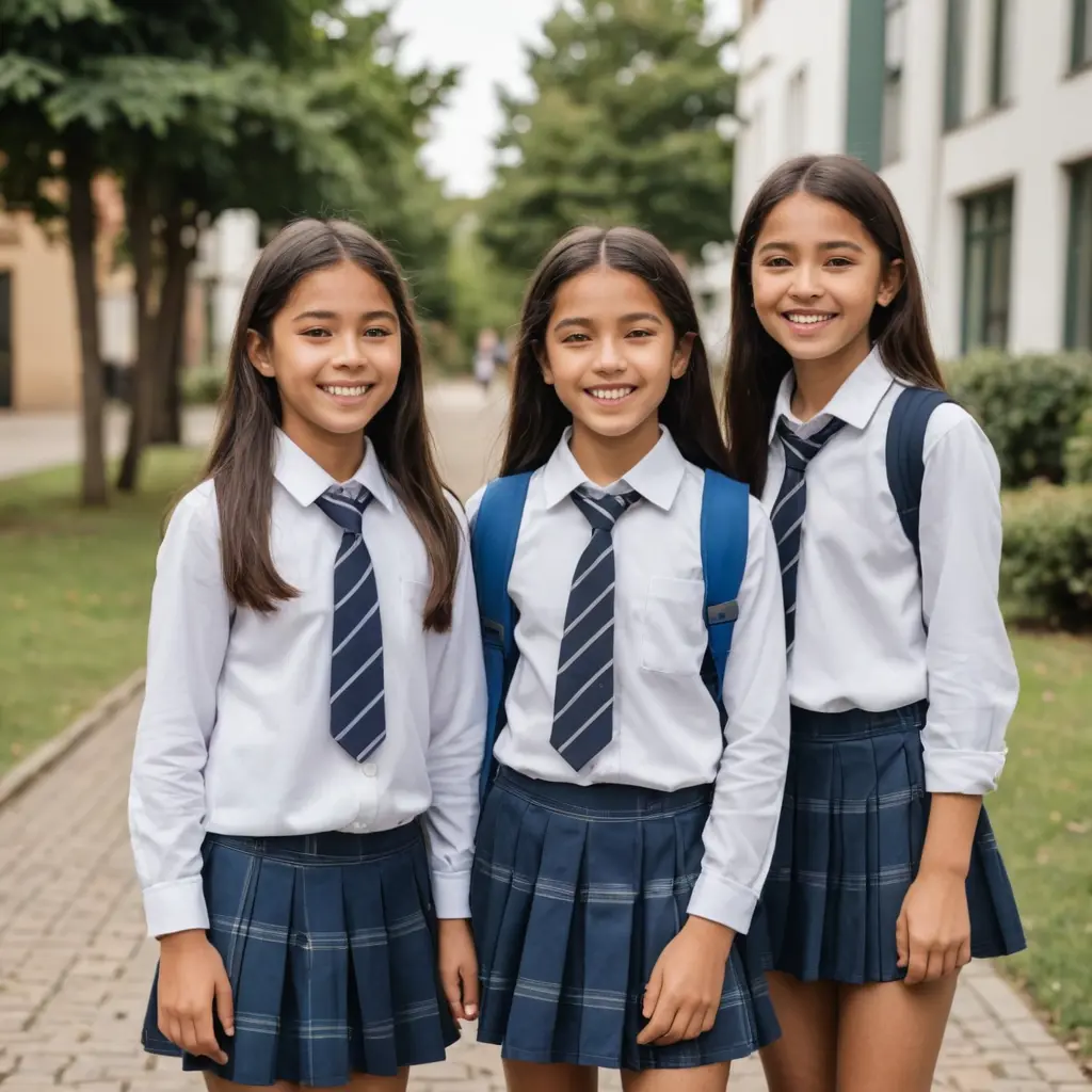 بنت ترتدي ملابس المدرسه مع صديقاتها