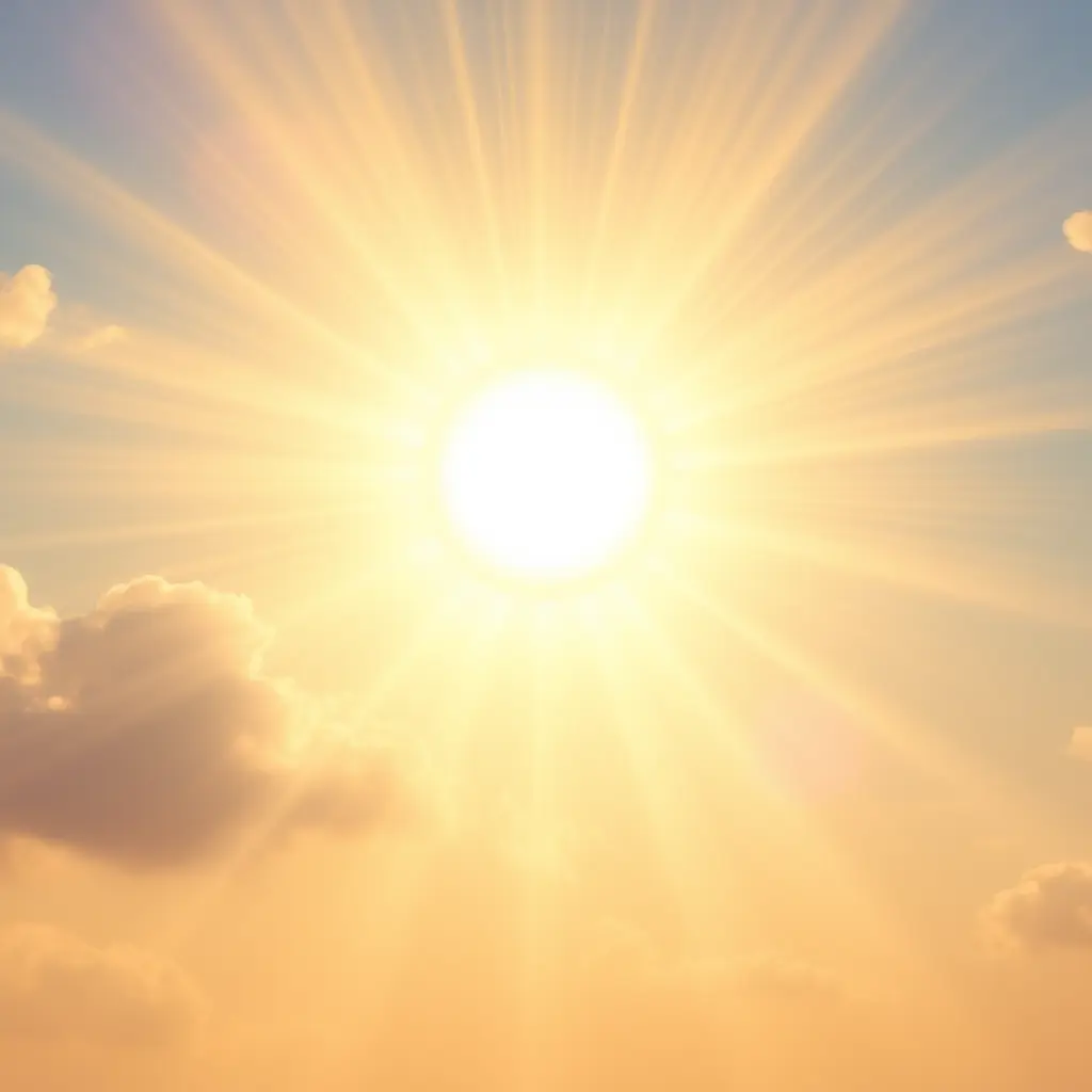خلفية سماوية تبعث بالسكينة. قرص شمس ساطع في السماء (الآب)، تنبعث منه: أشعة من نور قوي (الابن) تصل إلى الأرض وتُضيء. هالة دافئة غير مرئية لكنها محسوسة (الروح القدس) تظهر كضباب ناعم أو تصل إلى القلب