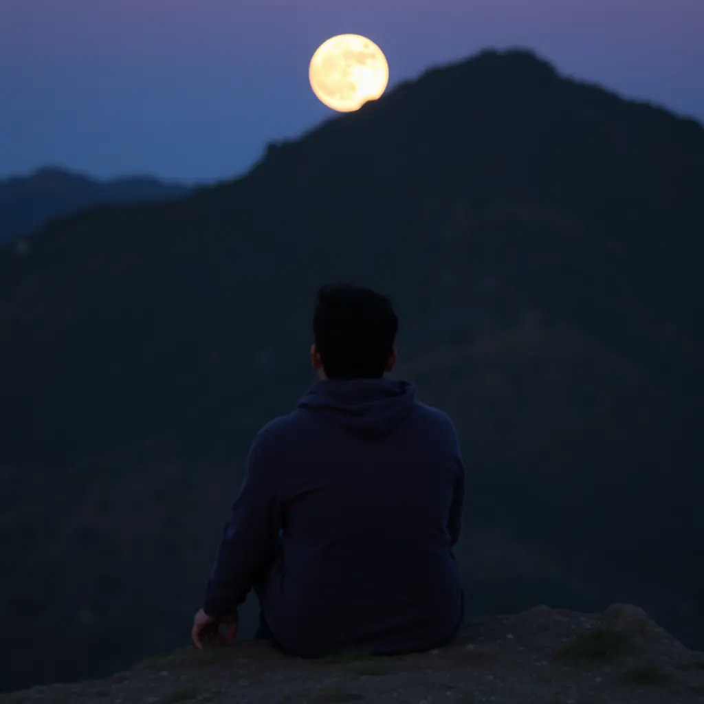 شخص جالس ينضر إلى القمر