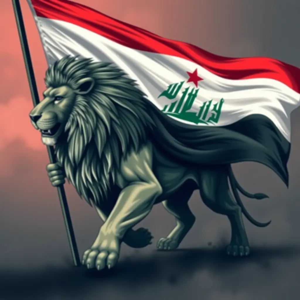 صورة اسد يحمل العلم العراقي