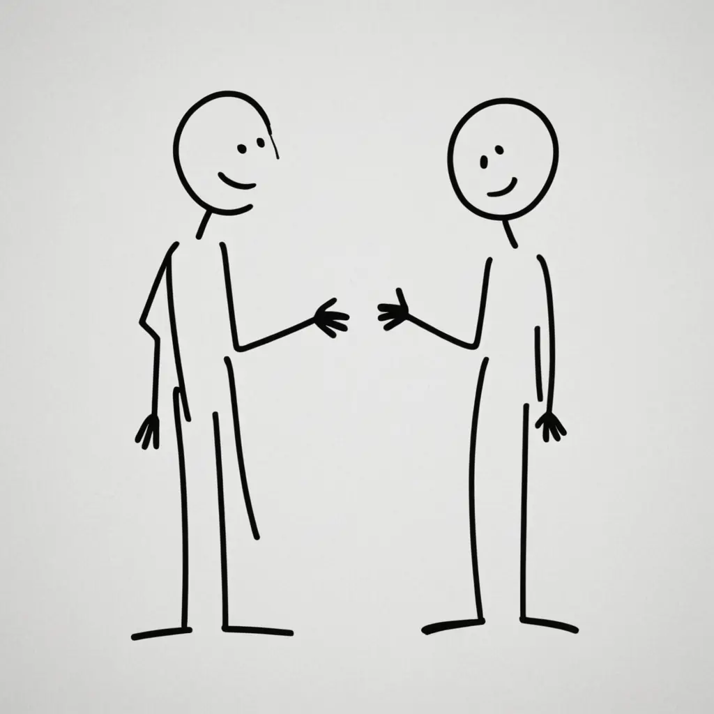 简笔线条画,2个火柴人的形象,他们正在进行一场对话,一个人问了一个问题,另外一个人表示很惊讶