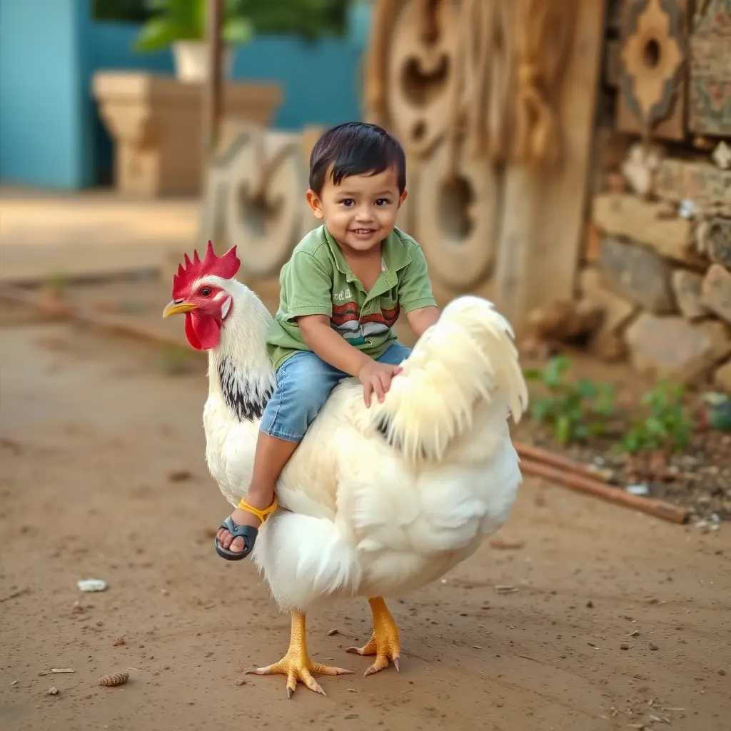 صورة ولد يركب دجاجة