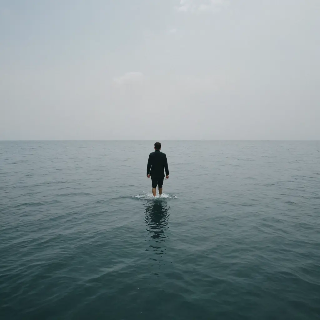 رجل يمشي وسط البحر