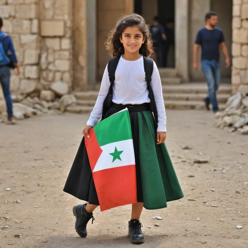 بنت لابسه تنوره حامله علم سوريا