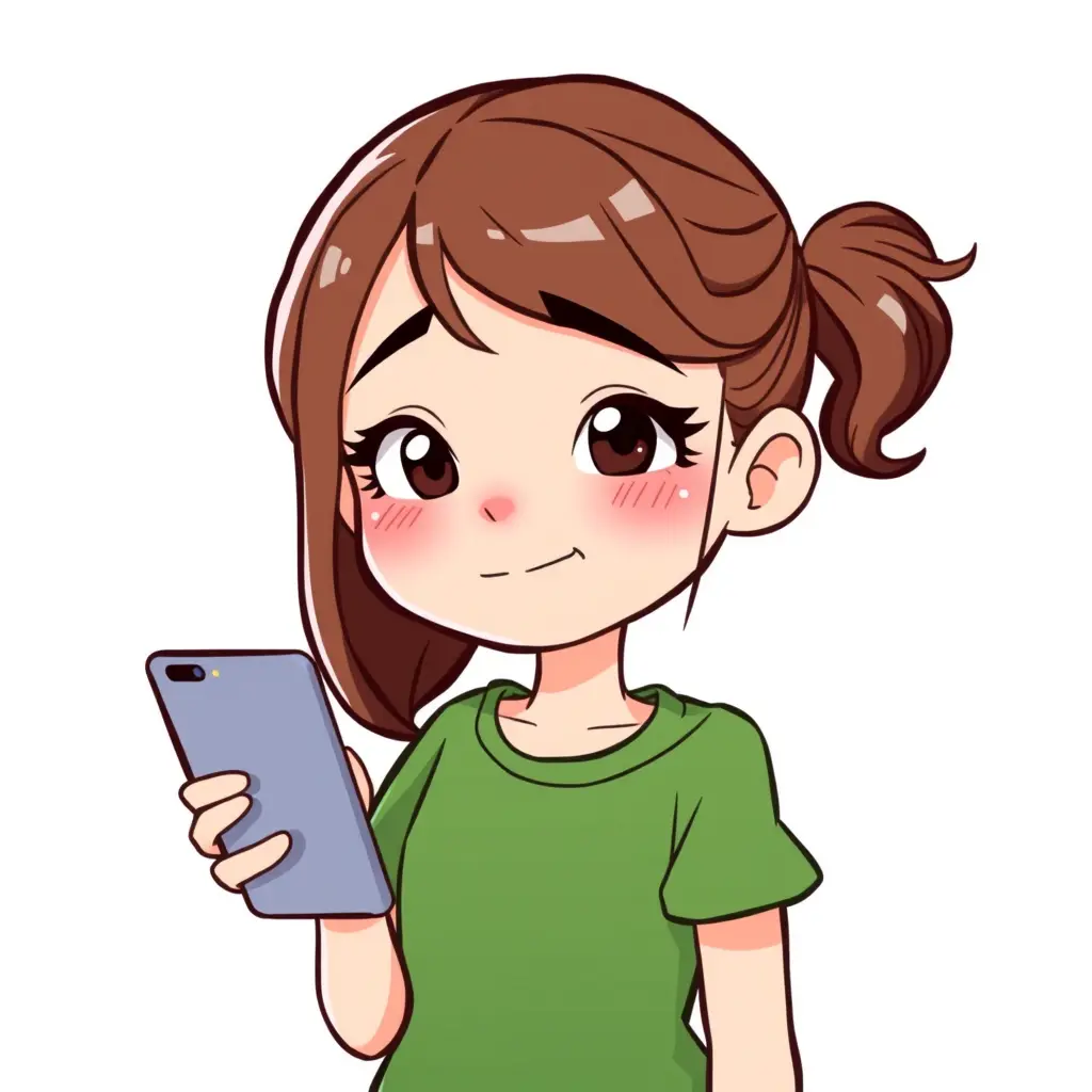 عايز صوره لبنت ماسكة موبايل وفرحانه بس صورة بنت كرتون مش عايزها فرحانه  ياعم عايزها حزينة عايزها ع شكل صورة كرتون
