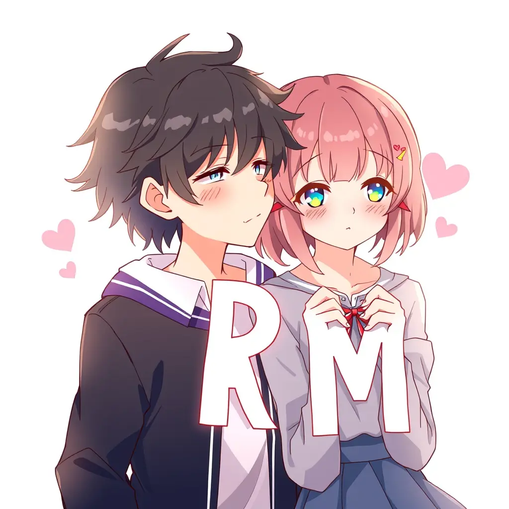 صوره ولد وبنت انمي بجوار بعض برومانسيه الولد يحمل حرف R والبنت تحمل حرف M