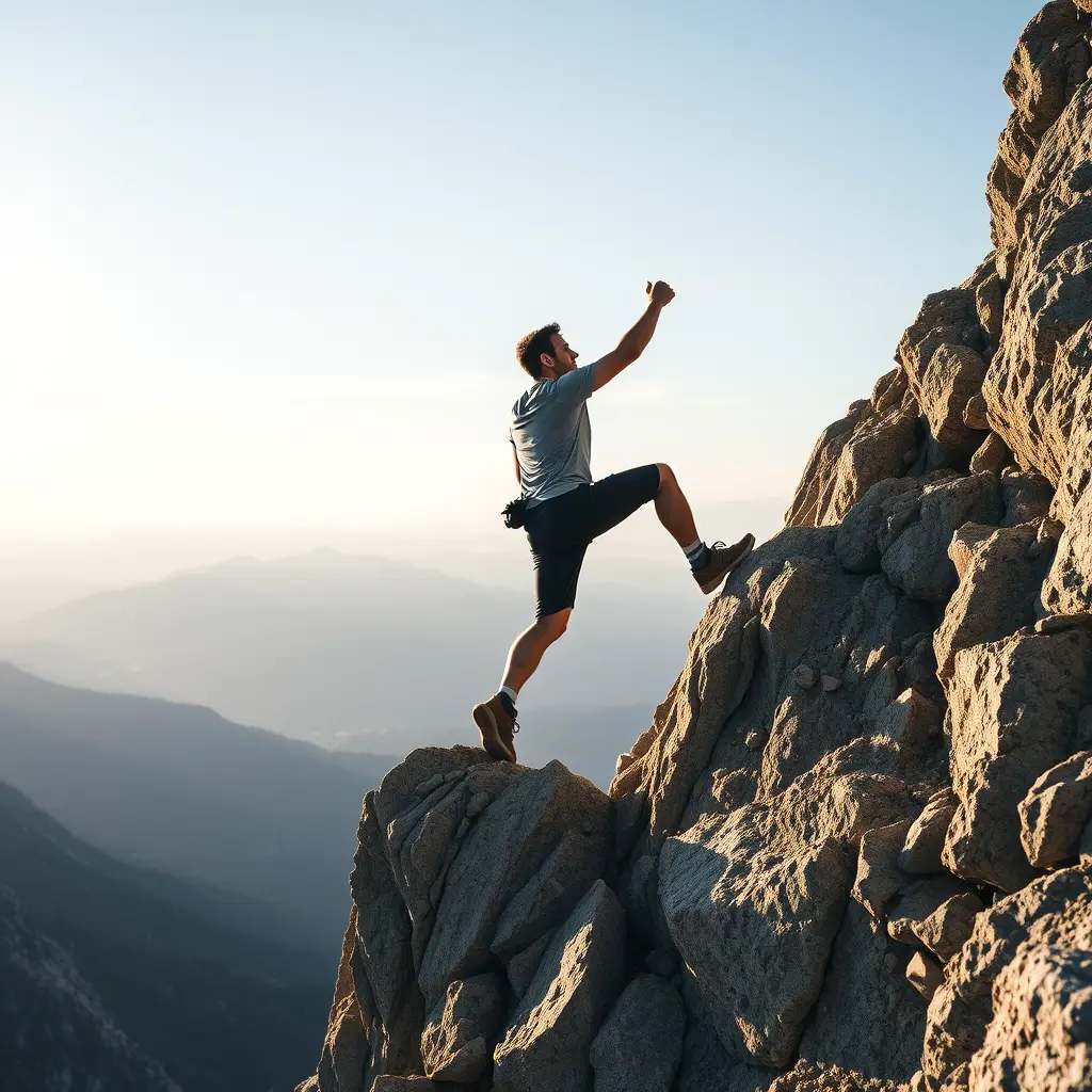 صورة رجل قوى يتسلق الجبال ولا يستسلم  للهزيمة