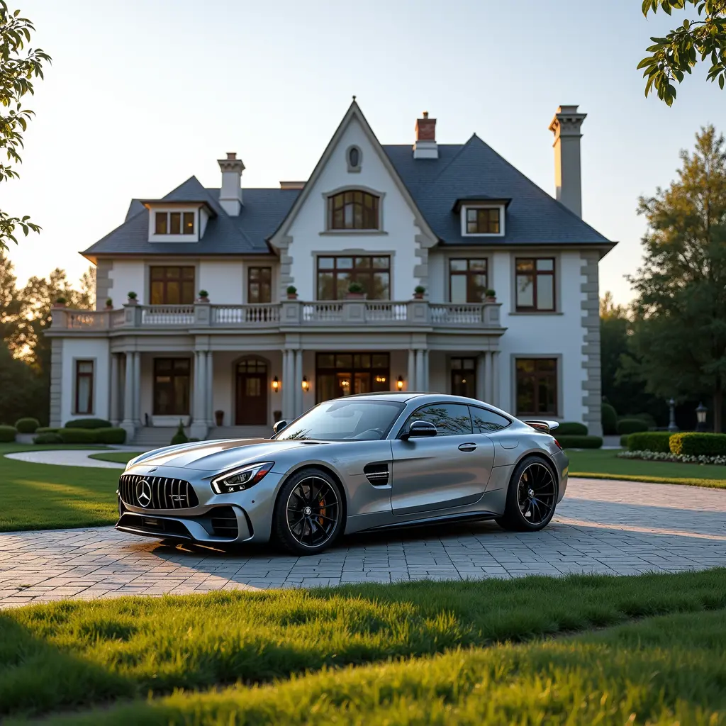 قصر كبير وجميل وامامه سيارة BMW
