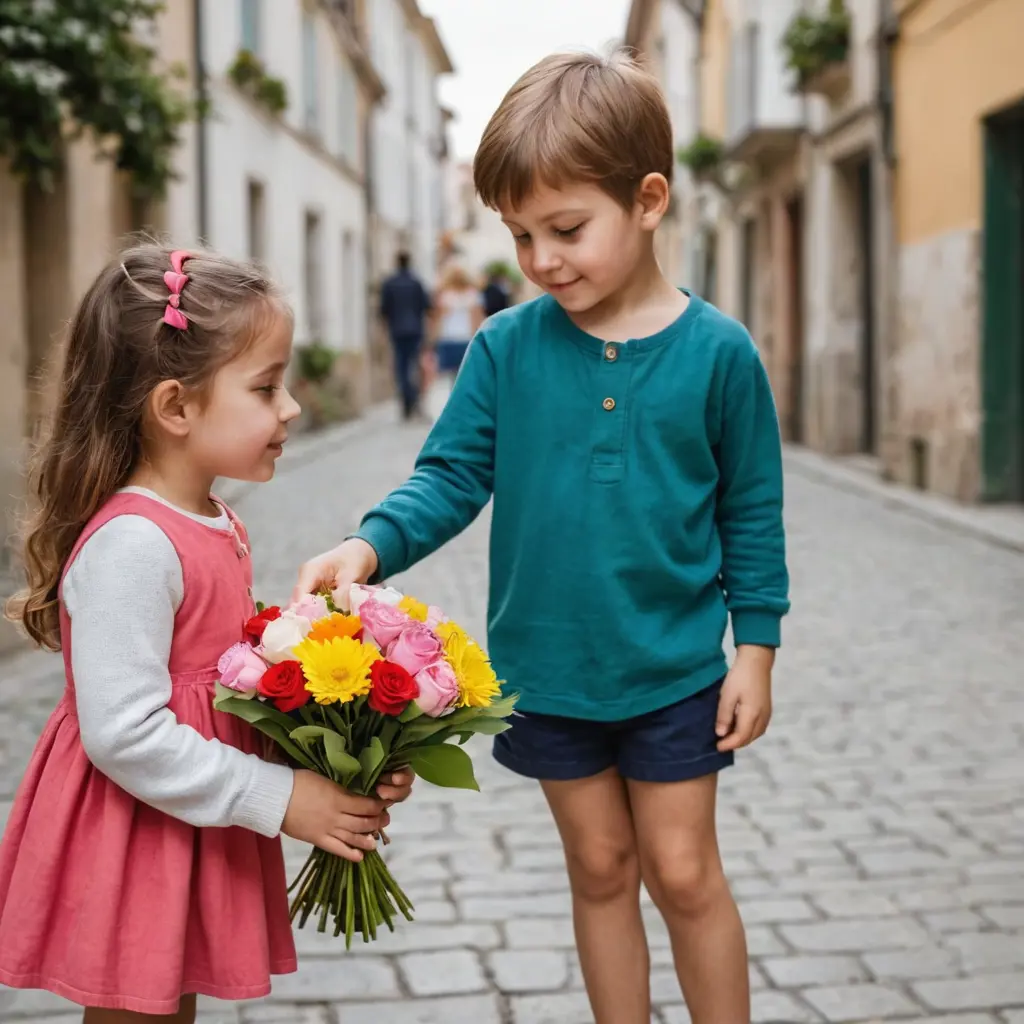 طفل يعطي ورد لصديقته