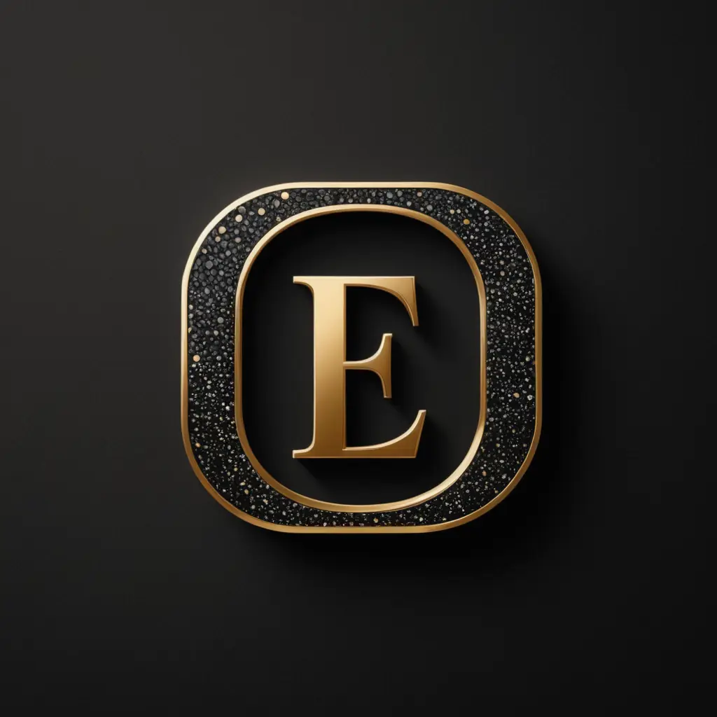 شعار ماركة أزياء بحرف E منمق، لامع، لامع، لامع، مصنوع بألوان الذهبي والأسود، حاد، عصري، فاخر