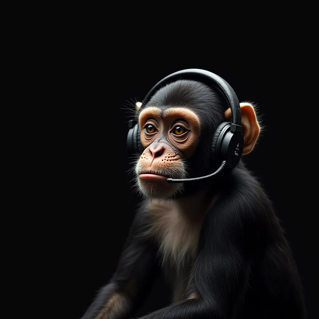 قرد معضل يرتدي السماعه شاشه سوده