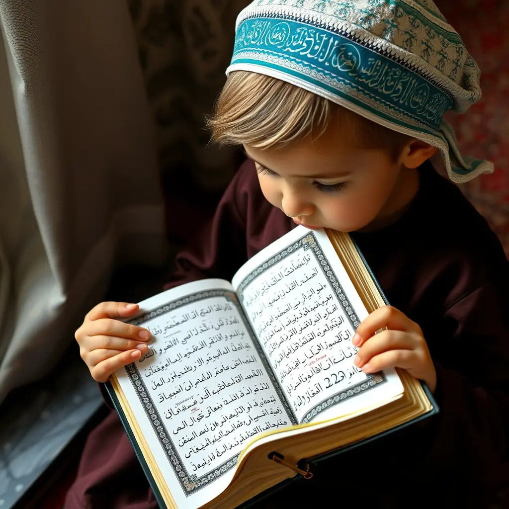 صورة لطفل يمسك المصحف الشريف أثناء الحفظ والقراءة