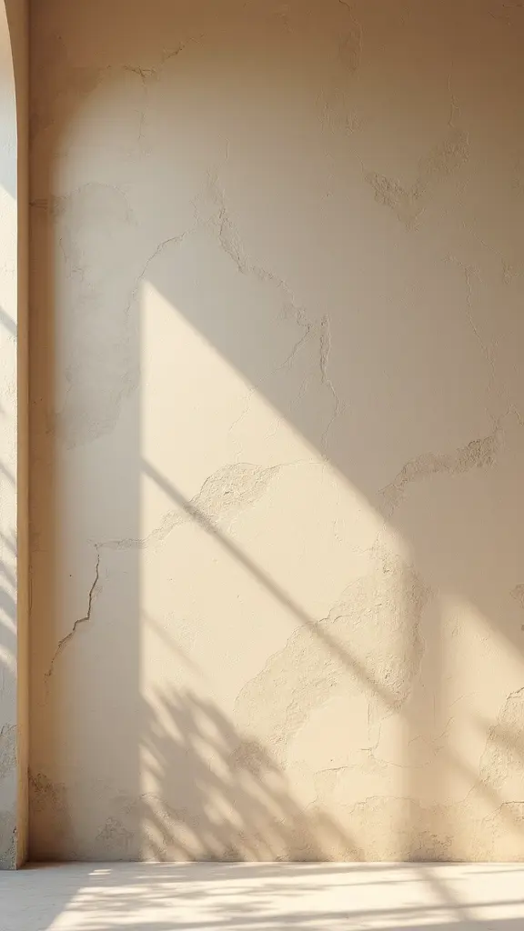 خلفيه فقط اللون الأساسي: بيج مائل للرمادي (رملي فاتح) بدرجات متفاوتة، يوحي بالهدوء والدفء، يشبه لون الجدران القديمة في البيوت الأوروبية أو العربية التقليدية. الملمس (الخامة): الجدار يبدو وكأنه مكوّن من جص قديم أو خرسانة ملساء معتقة، مع تفاوتات خفيفة في اللون توحي بالزمن — لا يوجد نقش، لكن ملمس السطح فيه لمسات يدويّة واضحة، مما يعطي إحساسًا واقعيًا عتيقًا. الإضاءة: إضاءة دافئة وخافتة من مصادر جانبية غير مرئية (مثل الشموع أو إضاءة خافتة من الأسفل)، تعكس ظلالًا خفيفة على الحائط وتُظهر تدرجات الملمس بشكل جميل. لا توجد إضاءة ساطعة أو حديثة. الجو العام: الخلفية تعطي إحساسًا بـزمن قديم، كلاسيكي، شاعري، مناسب لأجواء حفلات الزفاف أو جلسات التصوير الرومانسية. تبدو وكأنها داخل مبنى قديم أو قاعة أثرية دون أي زينة. المنظور: الجدار مسطّح، يملأ الخلفية بالكامل دون أي نافذة أو إطار أو عنصر آخر. لا توجد تفاصيل حديثة أو فنية تشتت ا