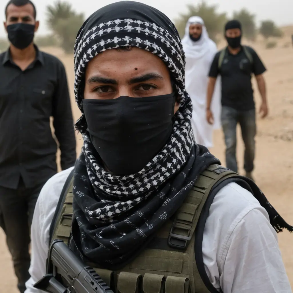 محارب ينزف ملثم بالكوفية
