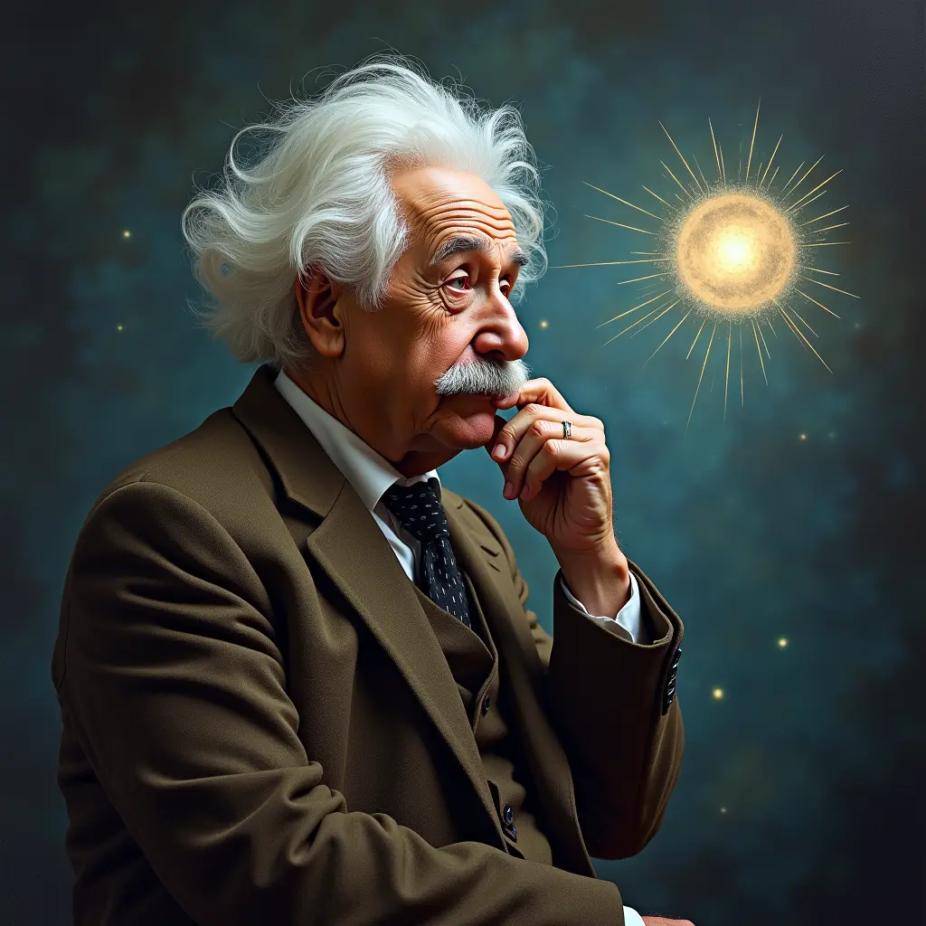صوره تشمل اينشتاين وهو يفكر