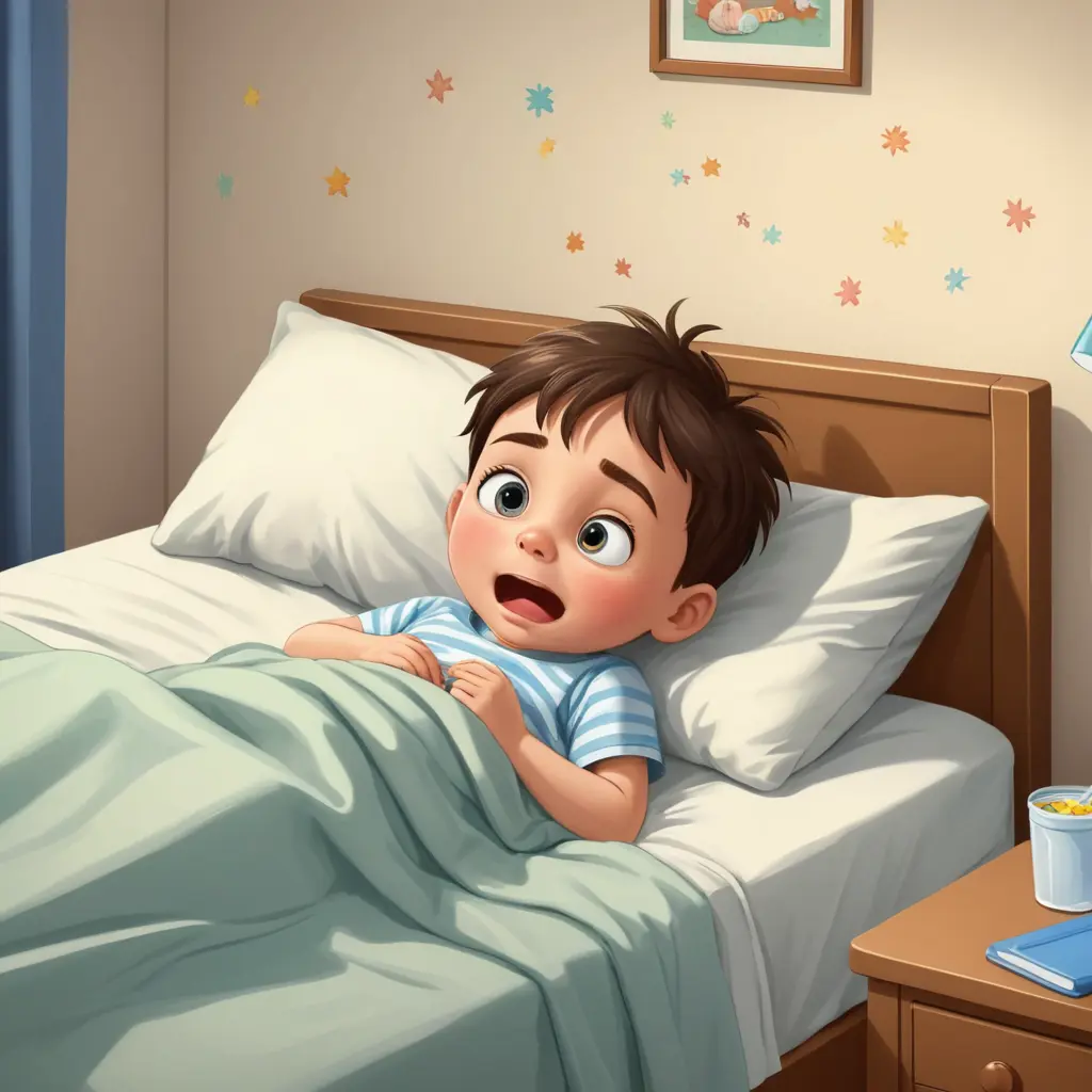 طفل مريض جدا في الفراش كارتون