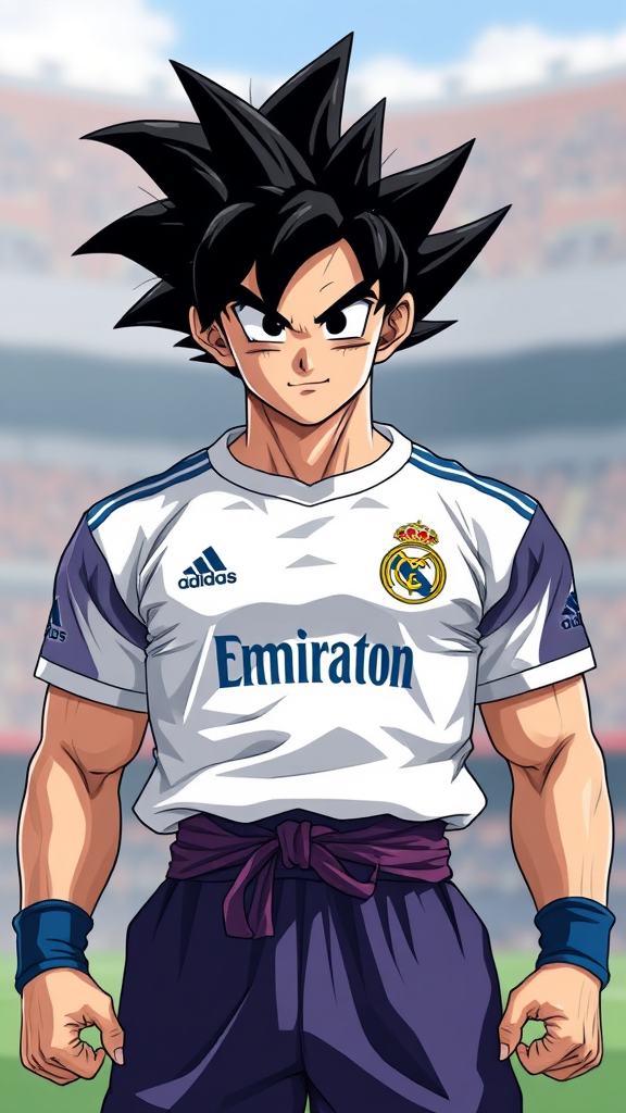 سون غوكو يرتدي قميص ريال مدريد