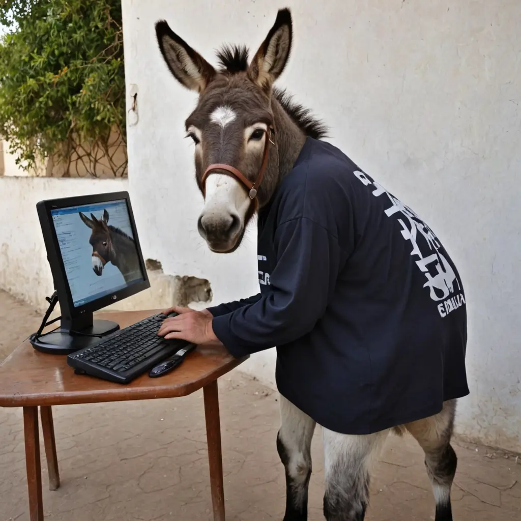 اعطني حمار يستخدم حاسوب و يلبس قميص مكتوب عليه mahmod