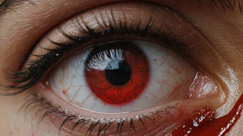 صورة عين تبكي دم على استشهاد الحسين وفيها صورة الحسين