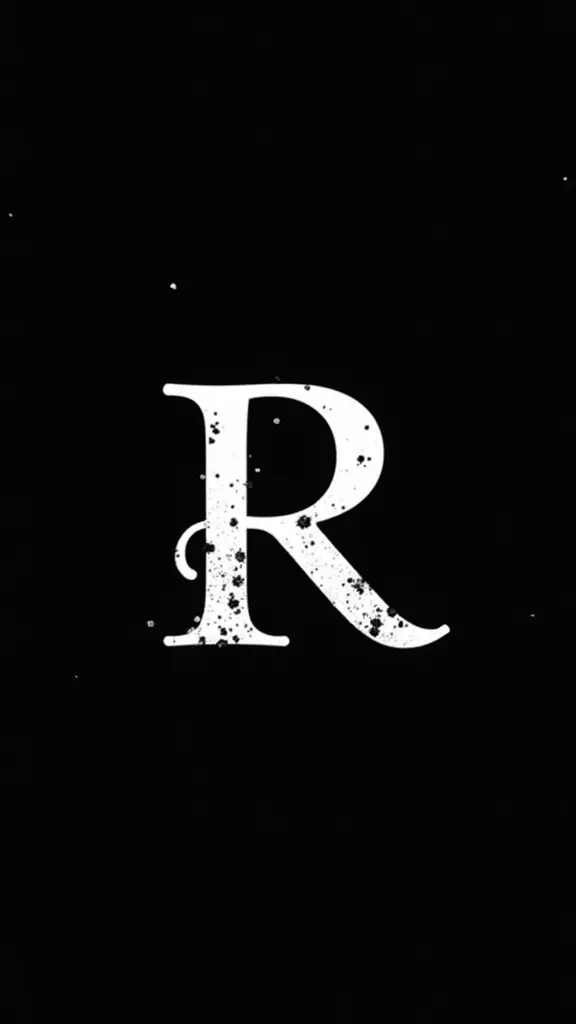 حرف R مزخرف و صغير بالابيض و له خلفيه سوداء