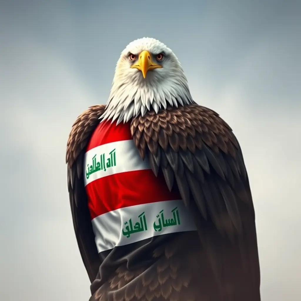 اريد صورة نسر على هيئة رجل يرتدي العلم العراقي