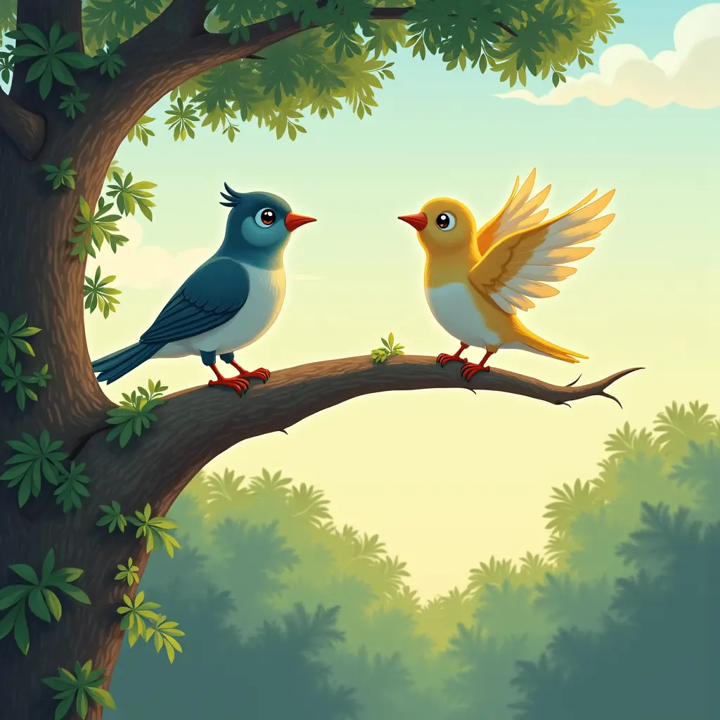 العصفور الذي أراد أن يطير بعيدًا في صباحٍ مشرق، كان هناك عصفور صغير يُدعى "زين" يعيش في عشٍ صغير على غصن شجرة عالية. كان زين يراقب الطيور الكبيرة وهي تحلق في السماء بحرية، ويتمنى أن يكون مثلها يومًا ما. لكن زين كان خائفًا من الطيران، فكلما حاول فرد جناحيه شعر بالتردد وقال لنفسه: "ماذا لو سقطت؟ ماذا لو لم أستطع الطيران؟" في يوم من الأيام، جاءته أمه وقالت: "يا بني، الطيران ليس مسألة قوة، بل مسألة ثقة. عليك أن تثق بنفسك وبجناحيك." شعر زين بالشجاعة بعد كلمات أمه. صعد إلى حافة العش، أخذ نفسًا عميقًا، ثم قفز! في البداية شعر بالخوف، لكنه سرعان ما شعر بالهواء يدعم جناحيه. أخذ يرفرف ويطير بين الأشجار وهو يضحك بسعادة. ومنذ ذلك اليوم، أصبح زين يطير كل صباح، وتعلم أن الخوف هو مجرد حاجز علينا تجاوزه لنحقق أحلامنا.