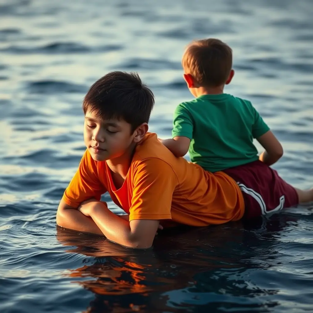 ولد عمره 13 في البحر وهو نايم على بطنه ولدها على الخلف