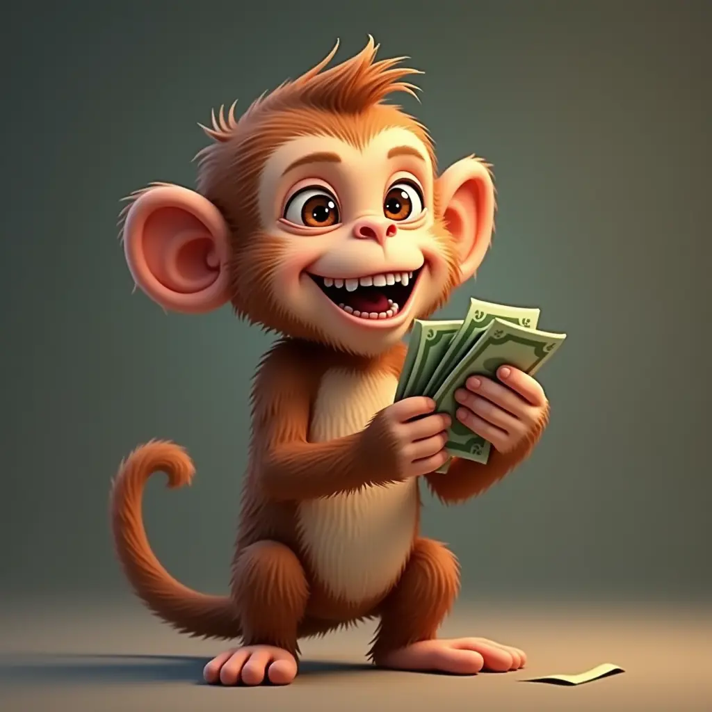 قرد صغير ماسك فلوس بيده ويعدها ويضحك