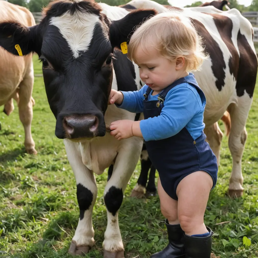 طفل صغير يرضع من البقرة