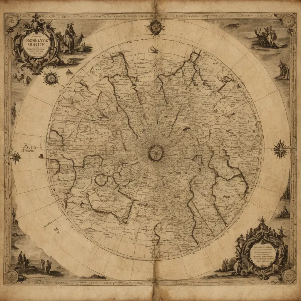 خريطة قديمة، حواف باهتة، منطقة رق فارغة في المنتصف