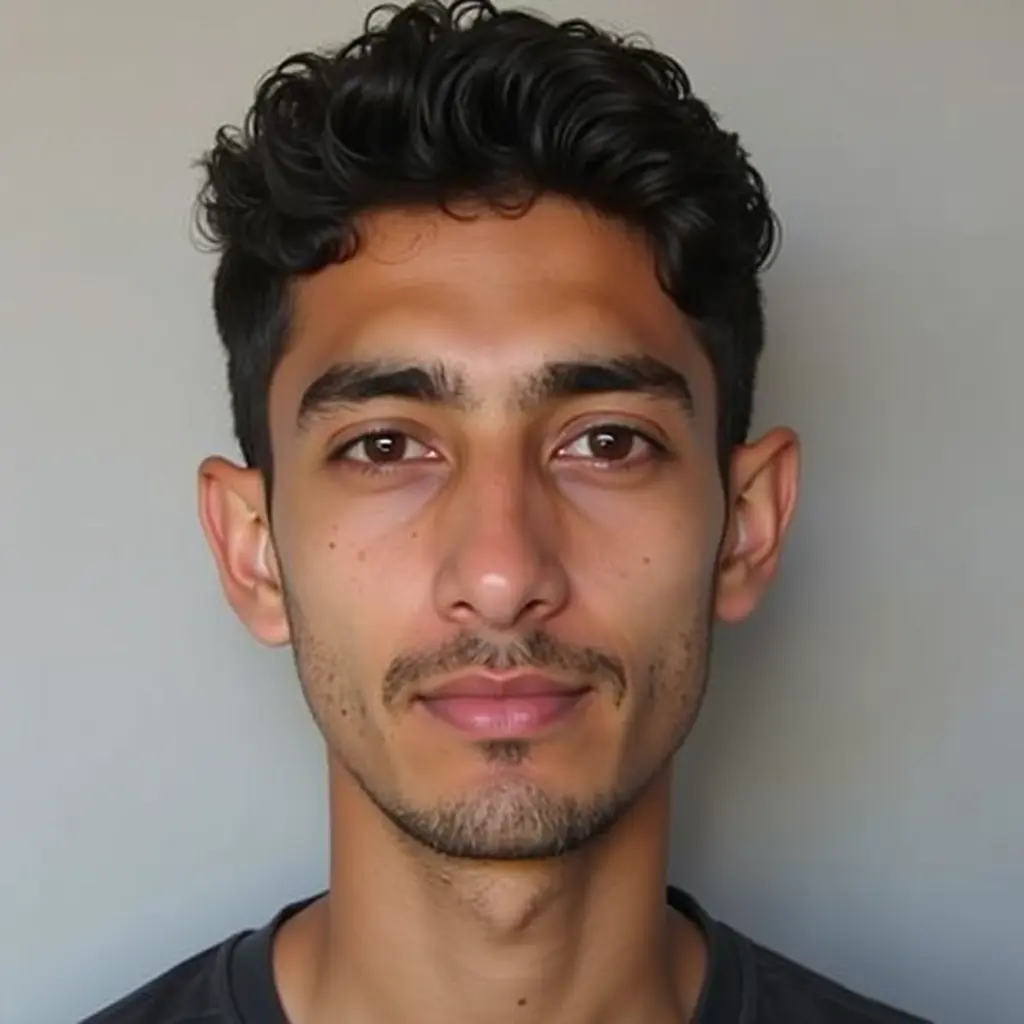 صورة لشاب عراقي بعمر الثامن عشر عيناه صغيرتان نوعاً ما أنفه متوسط وفمه متوسط لون بشرته طبيعي وهو يمتلك عدلات