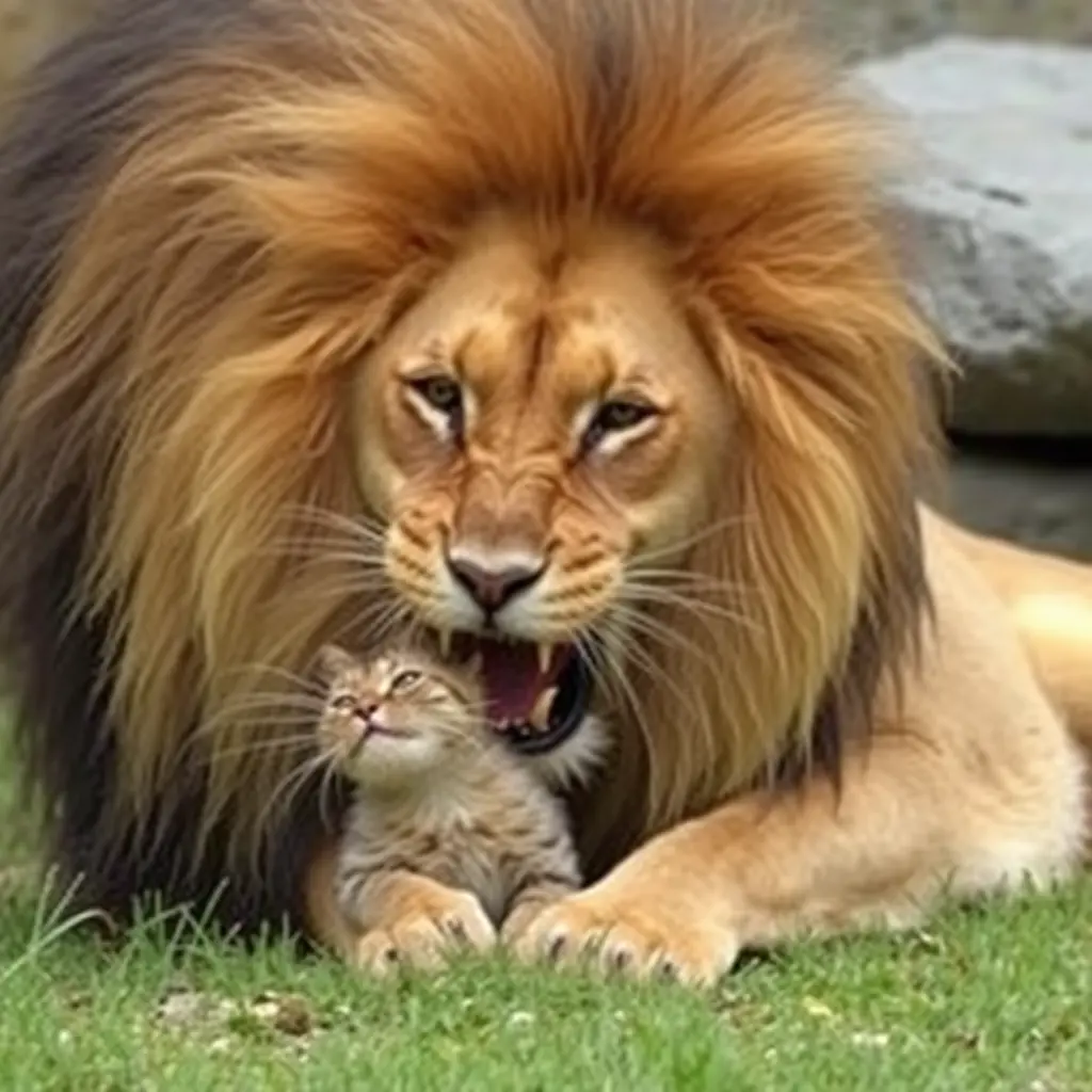 اسد يأكل قطة