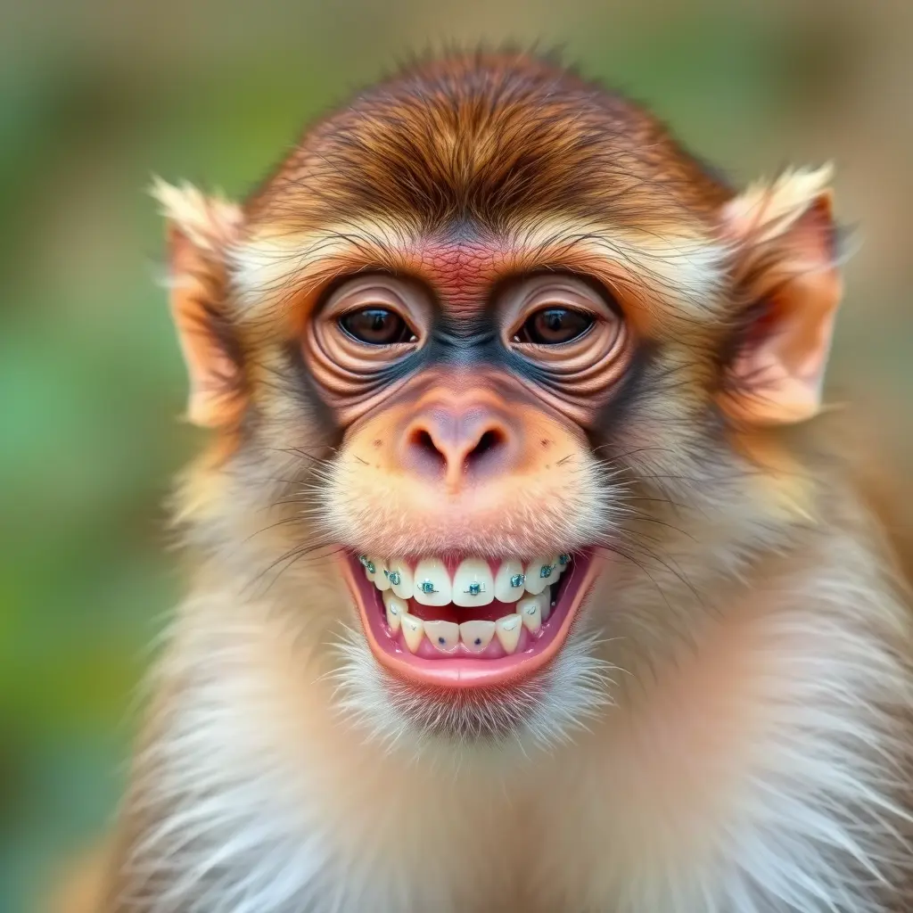 صورة قرد لابس تقويم اسنان و يبتسم