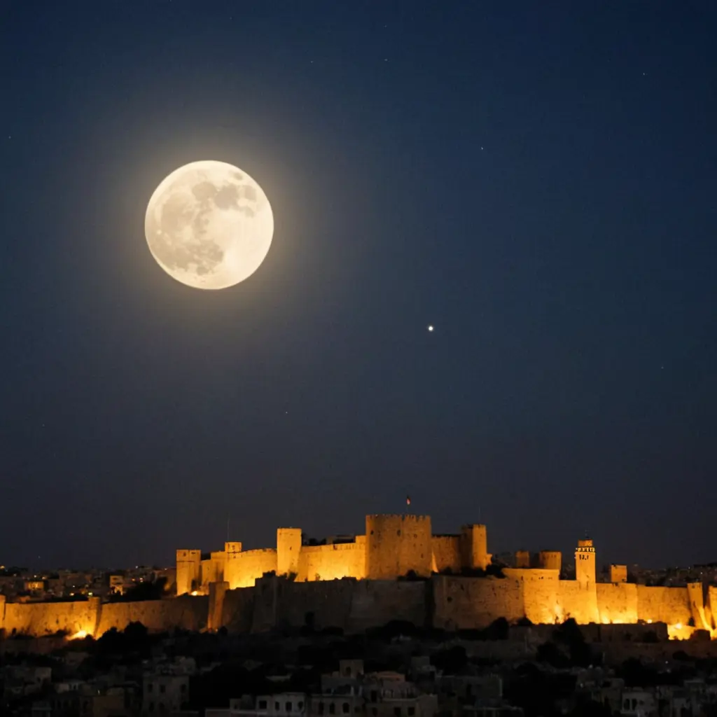 صورة قمر فوق قلعة حلب