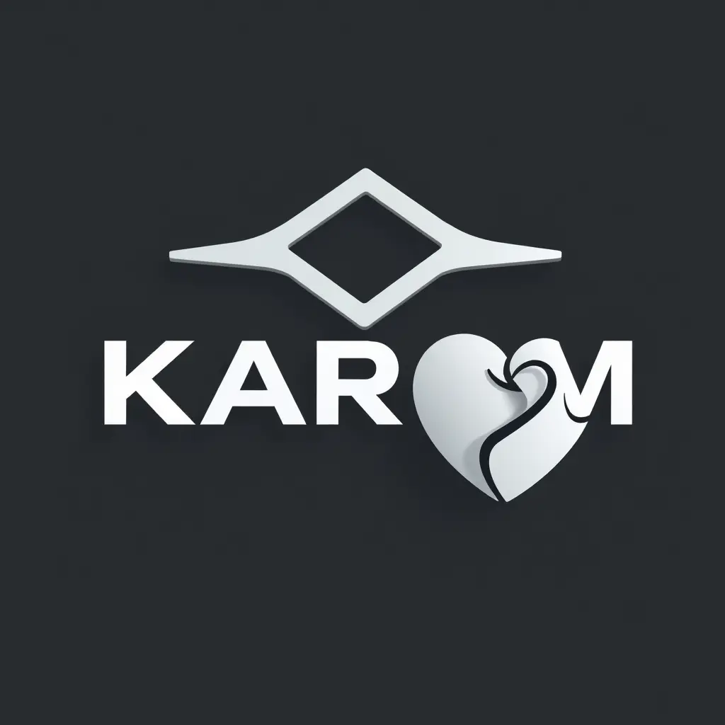 Generate a minimalistic futuristic style logo in 2d for a company named 'KARAM'  in the medical field. The logo should prominently feature K and heart which uses gray colors palette.