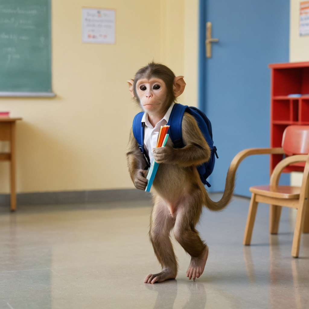 قرد يذهب إلى المدرسه