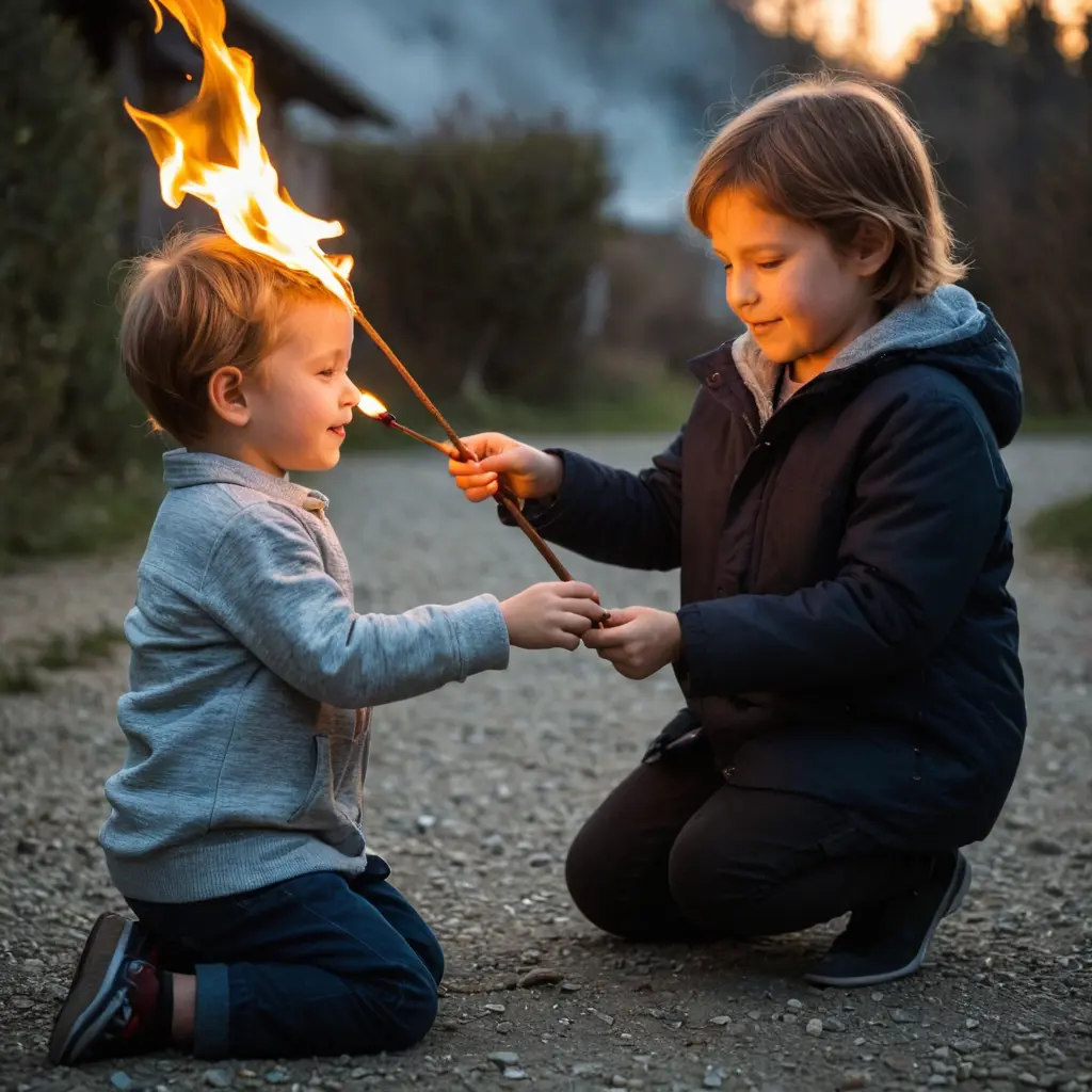 طفل يلعب بالنار