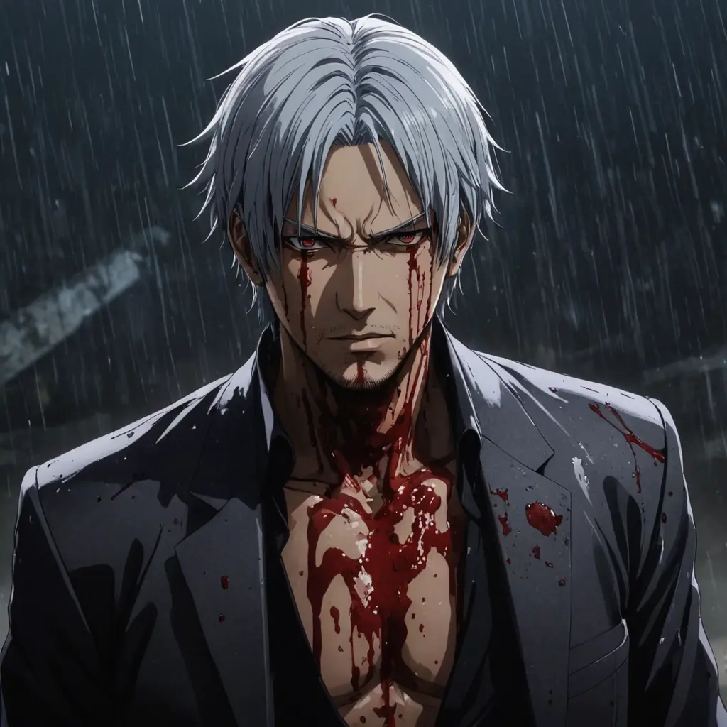 صورة. مهيبة ل غابيمارو من انمي Jigokuraku و الدم ينزل عليه كالمطر