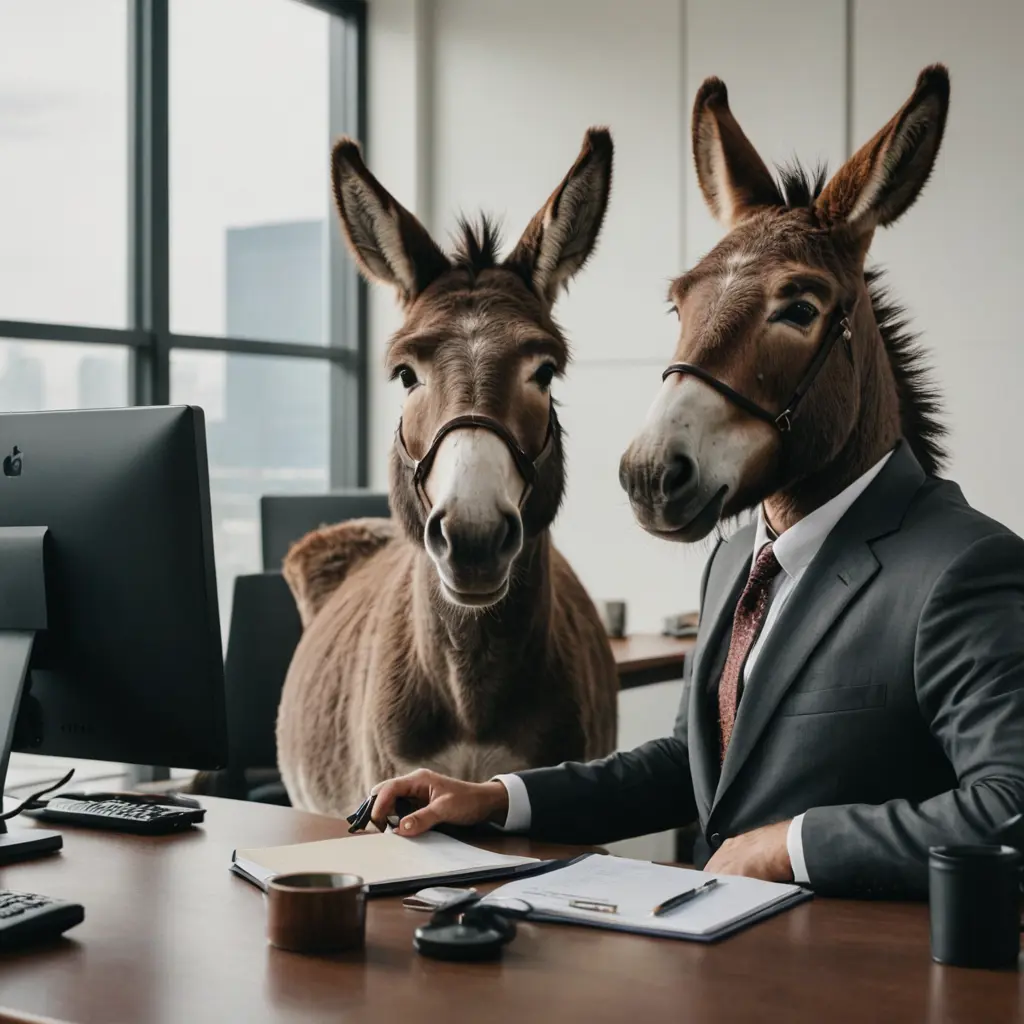 حمار يجلس على مكتب مدير شركة