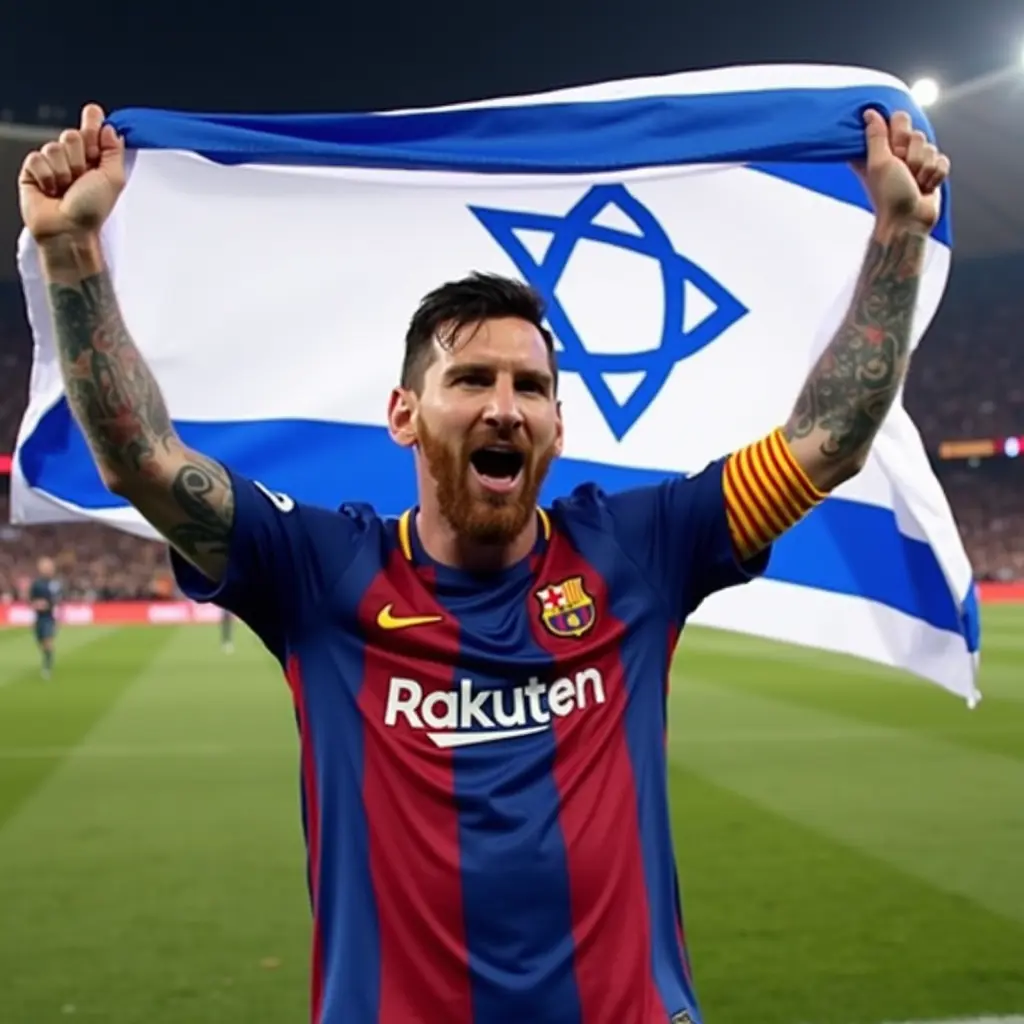 ليونيل ميسي في تل ابيب ويرفع علم اسرائيل