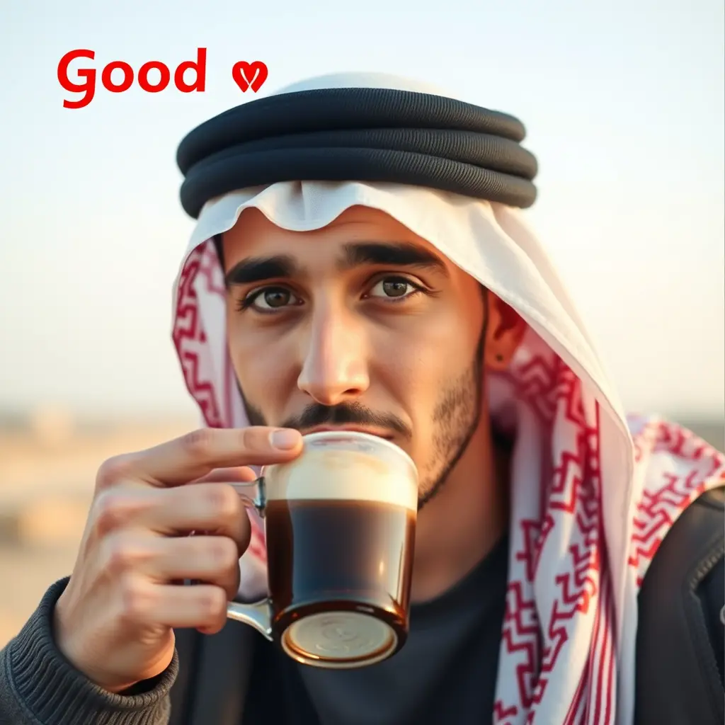 شاب خليجي يشرب قهوه ويقول صباح الخير
