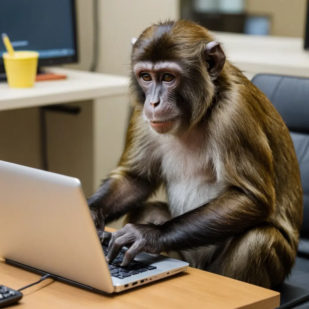 قرد يشتغل على حاسوب