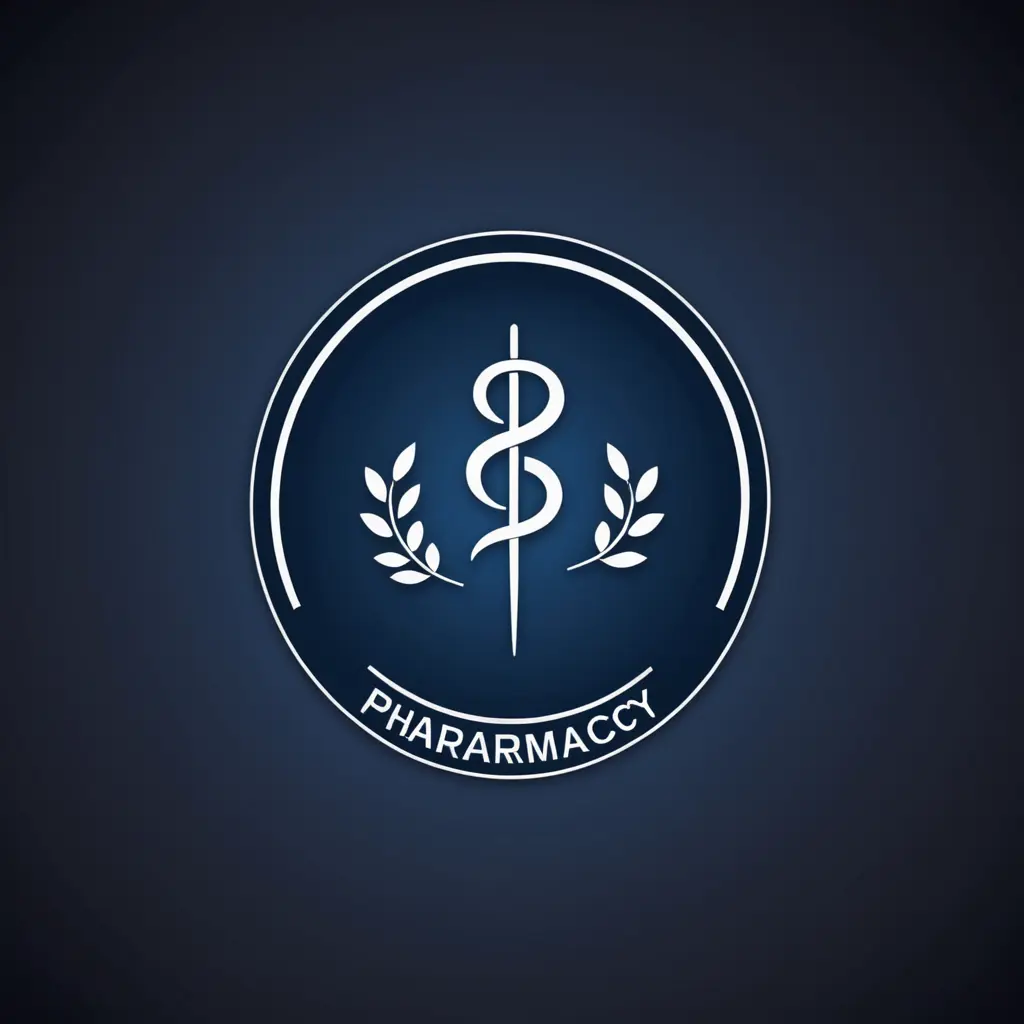 شعار صيدلية تصميم دواء بخلفية ازرق غامق