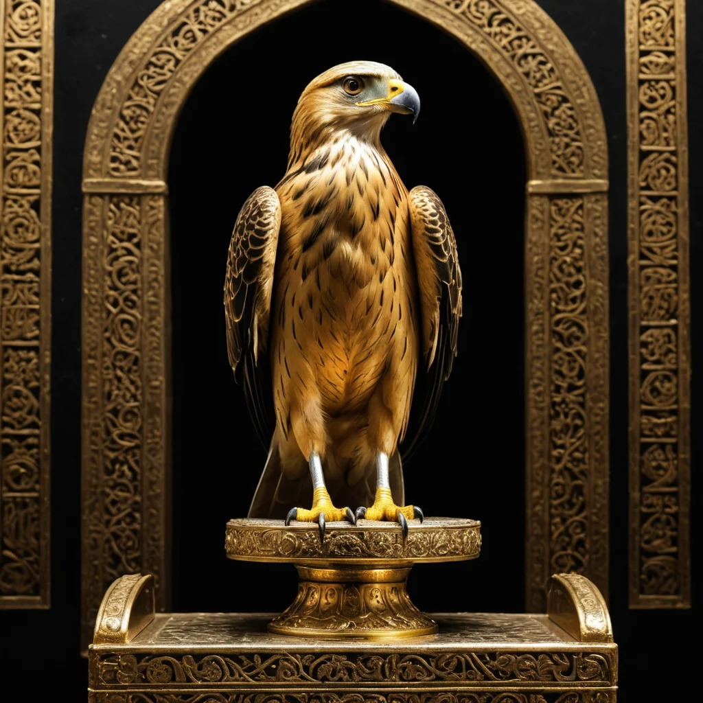 صقر ذهبي  على عرش ذهبي وخلفيه سوداء اليمن