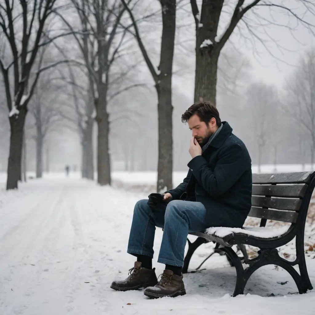 أريد صورة رجل متعب يجلس وحيداً في فصل الشتاء
