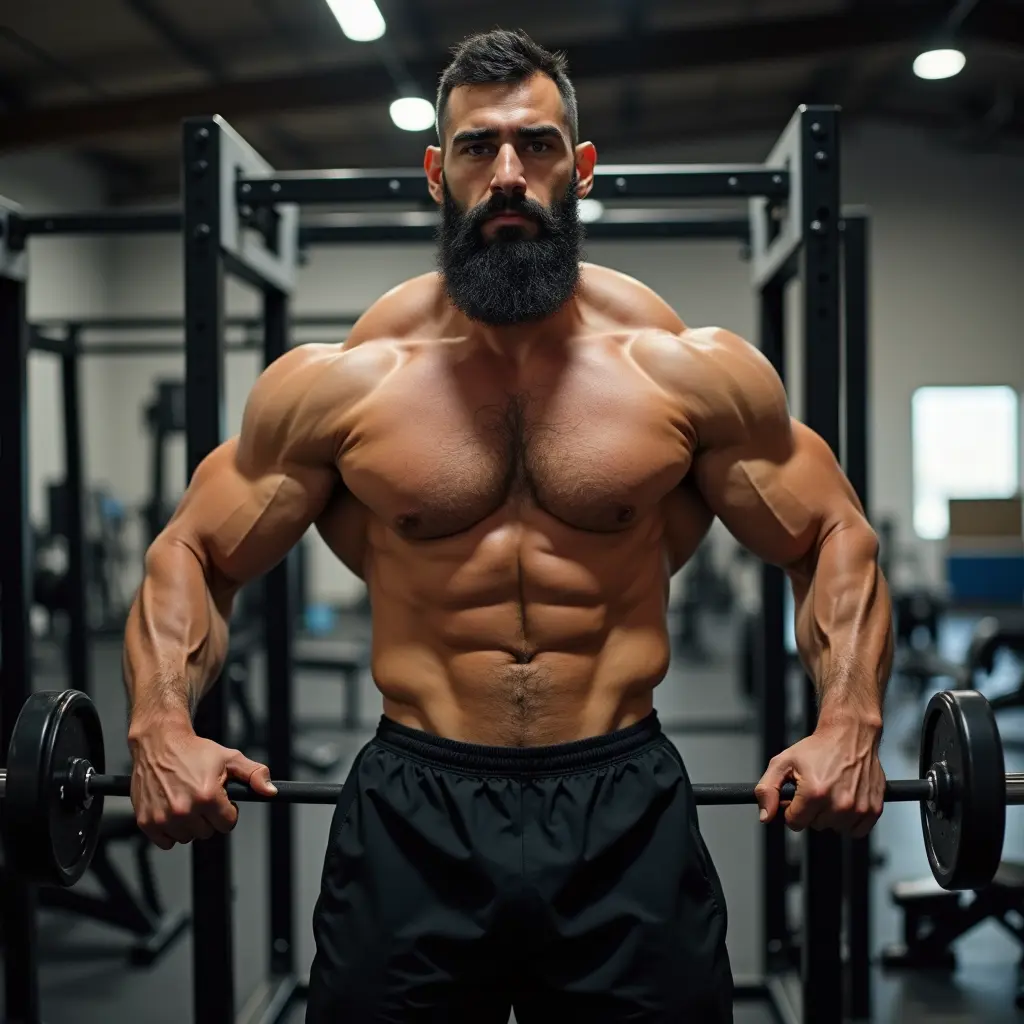 رجل معضل عربي طوله ١٦٤ ووزنه ٧٠ كيلوجرام يتمرن في الجيم