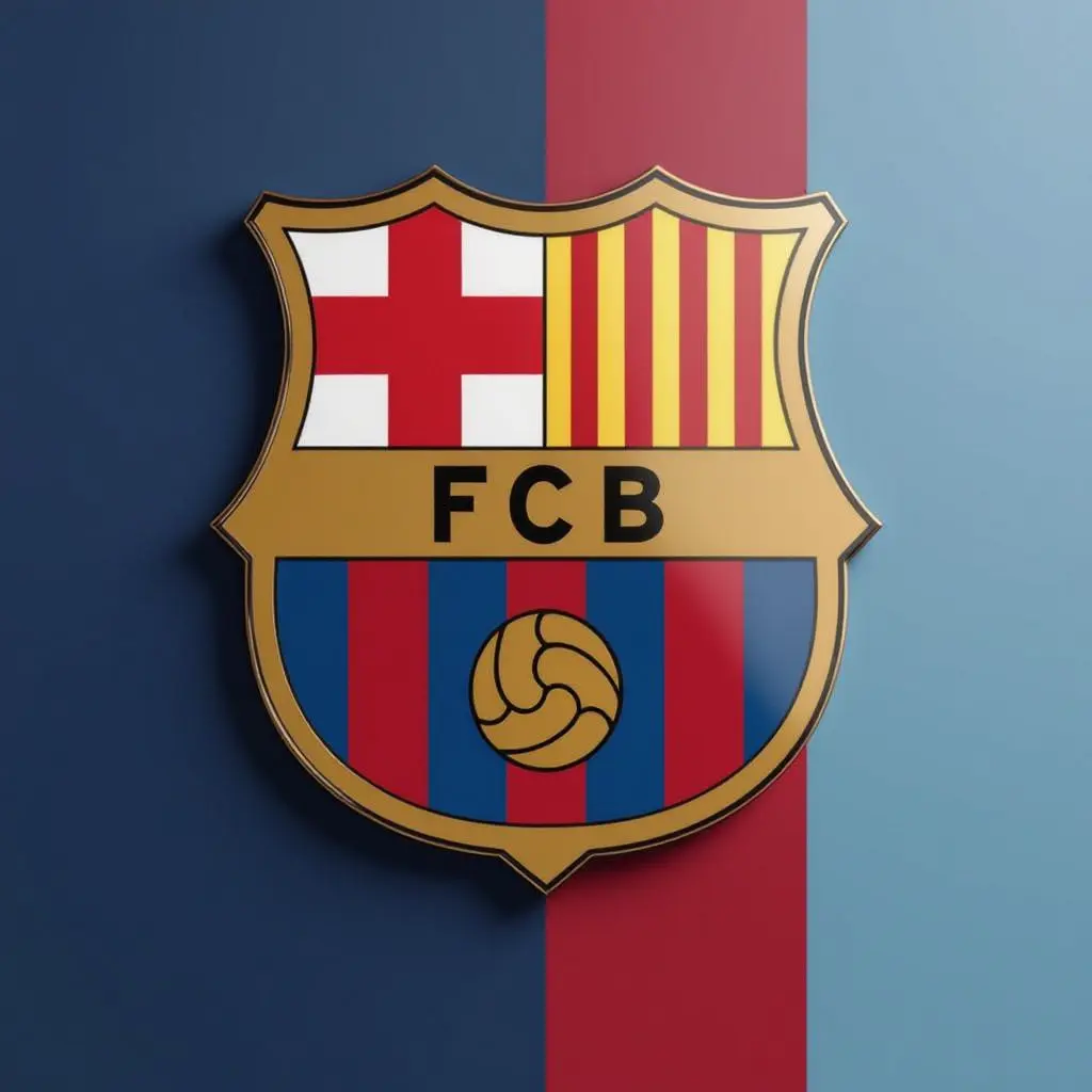 A completely realistic and high-resolution image of the new 2026 FC Barcelona club logo design. The crest should include all the traditional elements — the Saint George cross, Catalan stripes, FCB letters, and the football — rendered in a modern, realistic metallic style. The background should be vertically split into two halves: the left side light blue and the right side light red, matching a soft modern version of Barcelona’s colors. Use ultra-realistic lighting, gentle shadows, and smooth reflections. Perfect for high-quality cake printing.