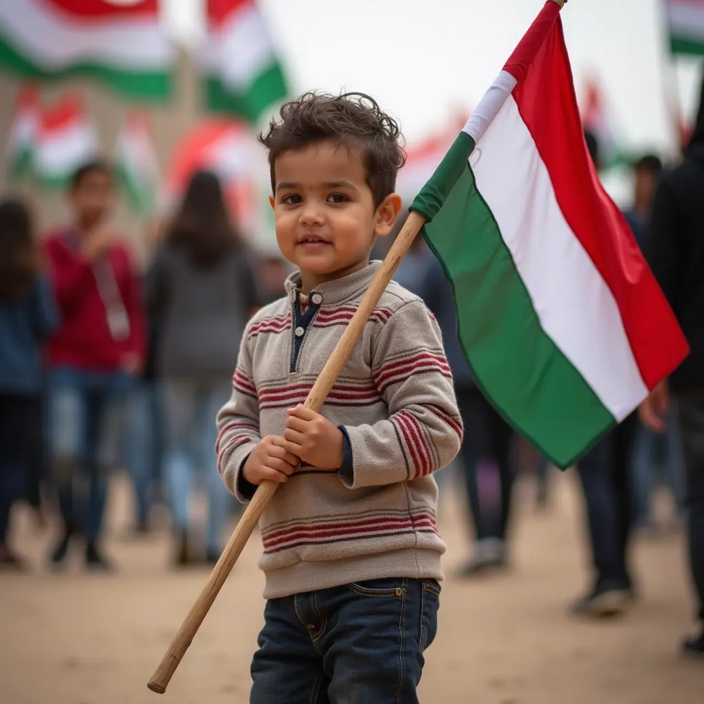 طفل يحمل علم اليمني في اسماء  وياسعموه
