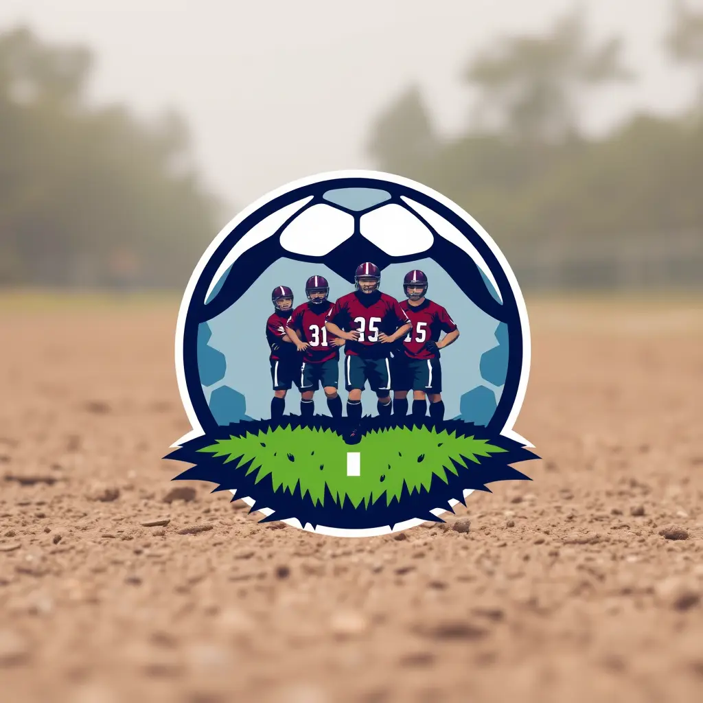 شعار فريق كرة قدم يوجد فيه ملعب تراب وداخله 4 لاعبين