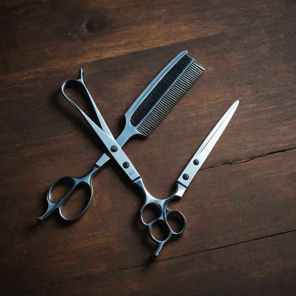 تصميم صورة مقص ومشط لصالون للحلاقة الرجالية